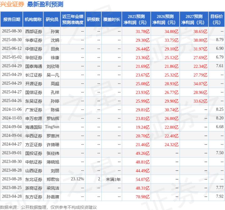 东吴证券股份有限公司孙婷,何婷近期对兴业证券进行研究并发布了研究报告《2025年中报点评:经纪、自营业务带动公司归母净利润增长超过40%》,给予兴业证券买入评级。